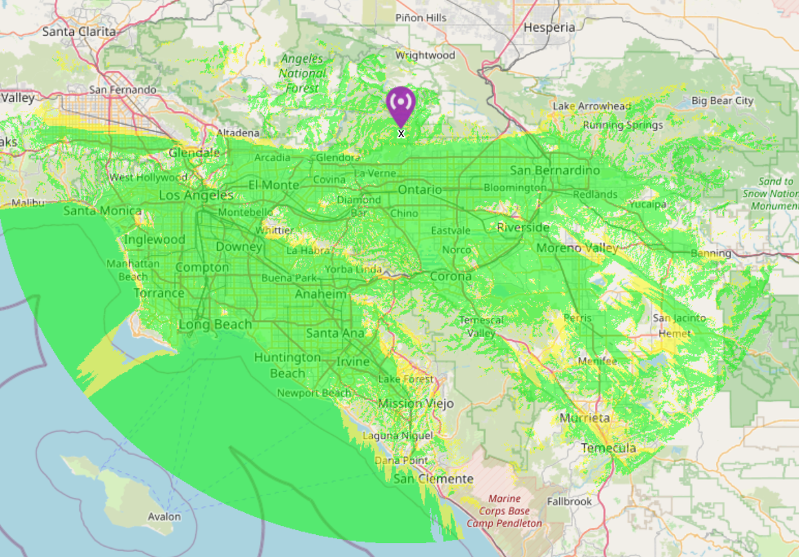 Site elevation: 5315 AMSL County of operation: Los Angeles County Location: 034 11 14.2N / 117 42 04.1W Support structure: 200' Tower 00m Tower 00m HA Land owner: USFS